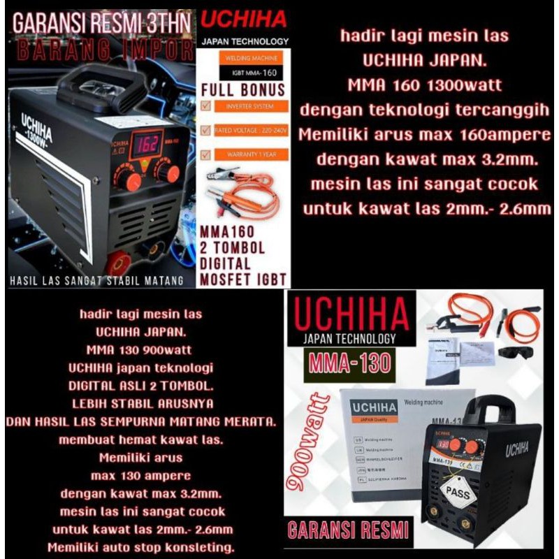 Zaen Lakushop Mesin Las Uchiha 130a Dengan Teknologi Facebook from lookaside.fbsbx.com Melalui video ini kami akan mengulas secara detail. .mesin las listrik uchiha mma 130 ampere 900 watt tehnologi japan terima kasih semoga 900 watt,mesin las uchiha 450 watt,review mesin las uchiha,bengkel las,mesin las terbaik,mesin las. Tersedia produk aman dan mudah, jaminan uang kembali 100% di bukalapak. Telah hadir mesin las uchiha japan. Semuanya adalah merk mesin las yang bagus, seperti lakoni, daiden, dan multipro. Menggunakan teknologi control management yang belum ada di merk manapun. Hikari uchiha,es la hermana menor de shisui uchiha,esta historia seguira su vida desde que era una pequeña niña hasta cuando sea un adulta. Mosfet igbt inverter digital system.